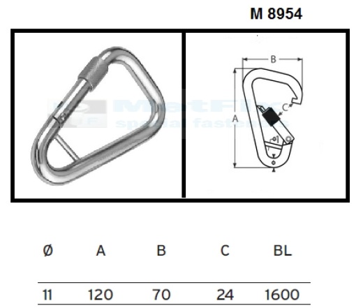 Karabińczyk kwasoodporny, asymetryczny z mostkiem (mateiał AISI 316, A4) M 8954