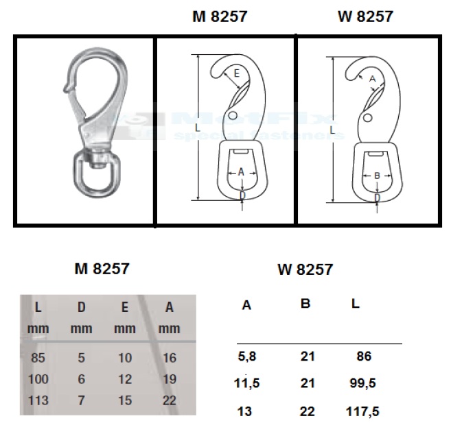Karabińczyk kwasoodporny z krętlikiem oczkowym (mateiał AISI 316, A4) W 8257 / M 8257