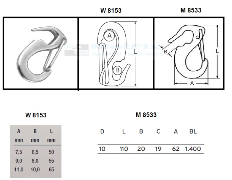 Karabińczyk kwasoodporny sprężynowy (mateiał AISI 316, A4) W 8153 / M 8533