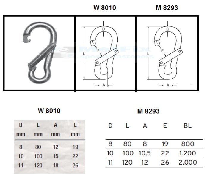 Karabińczyk kwasoodporny otwierany skośnie (materiał AISI 316, A4) W 8010 / M 8293
