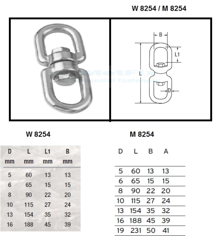 Krętliki kwasoodporne oko-oko (materiał AISI 316, A4) W 8254 / M 8254