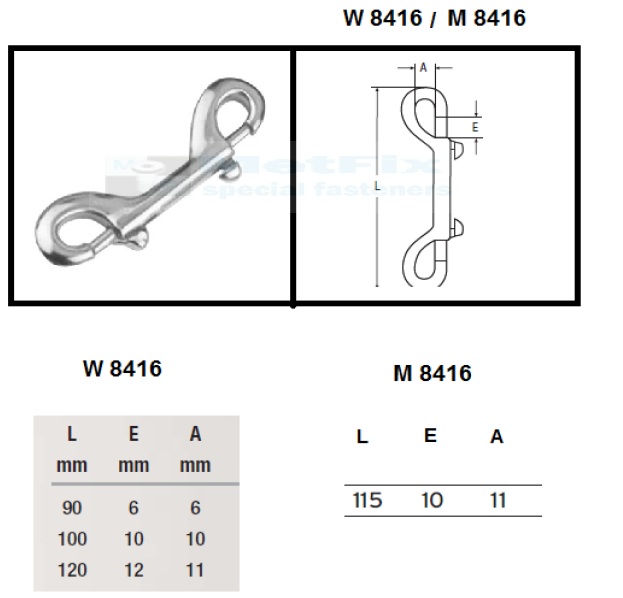 Karabińczyk kwasoodporny przesuwany, podwójny (mateiał AISI 316, A4) W 8416 / M 8416