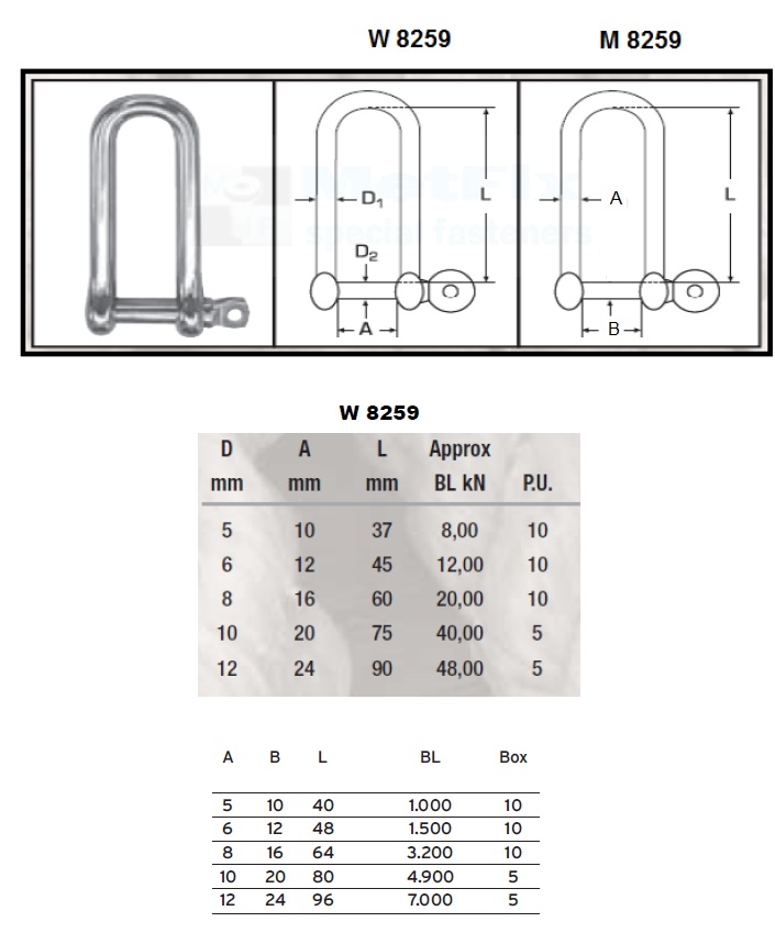 Szekle długie, kwasoodporne typu D (materiał: AISI 316 / A4) W 8259 / M 8259