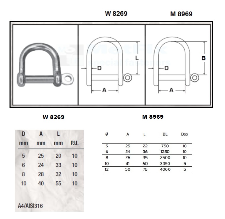 Szekle szerokie, kwasoodporne typu D (materiał: AISI 316 / A4) W 8269 / M 8969