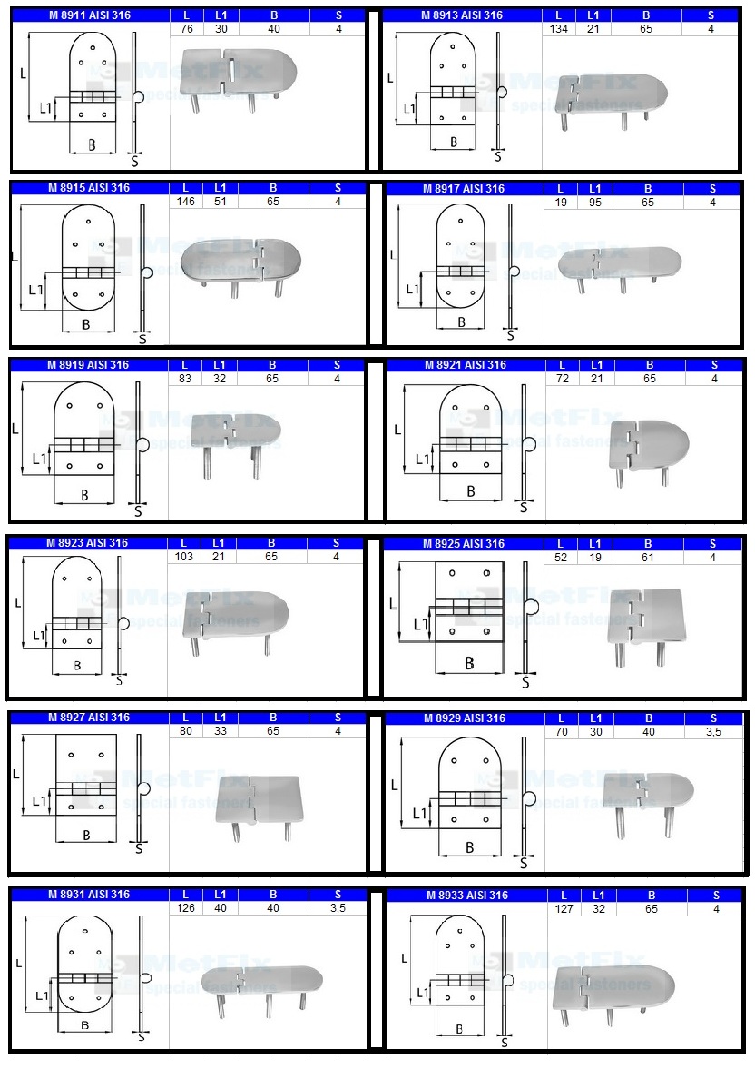 ZAWIASY NIERDZEWNE Z GWINTEM ZE STALI AISI 304 ORAZ AISI 316