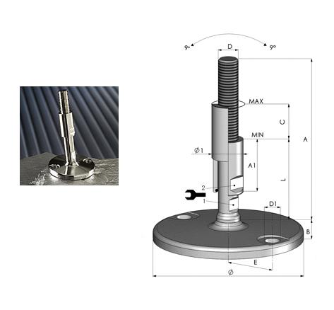 Stopka nierdzewna do maszyn z systemem kotwienia do podłoża – do dużych obciążeń typu DKHJF