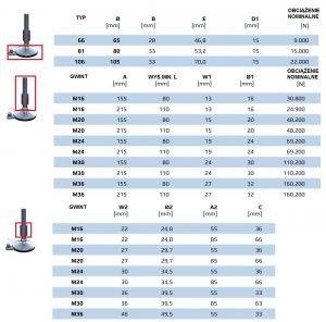 - Zakres wysokości 109 mm – 206 mm – Obciążalność do 70 000 N